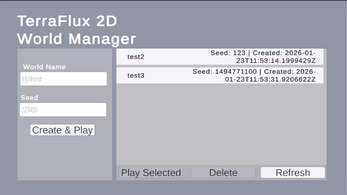 TerraFlux 2D is intended as a framework, not a complete game. It focuses on clean architecture, performance and safe integration into existing projects.